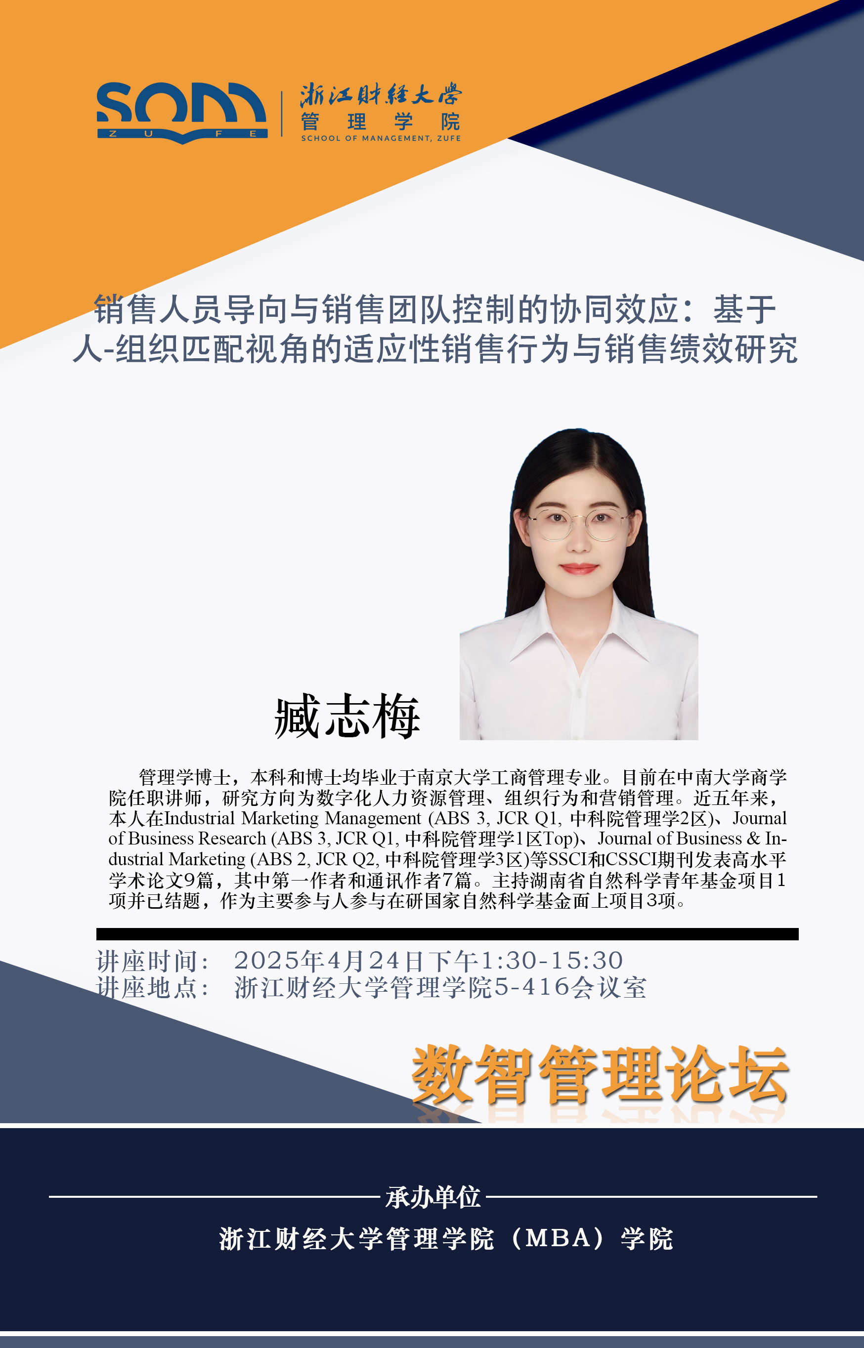 六合彩预测 新财经战略系列学术活动2025年第23期【学术报告】臧志梅:销售人员导向与销售团队控制的协同效应:基于人-组织匹配视角的适应性销售行为与销售绩效研究