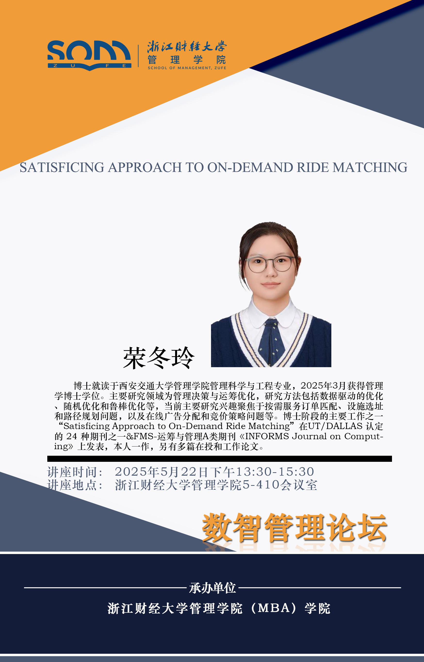 六合彩预测 新财经战略系列学术活动2025年第37期【学术报告】荣冬玲:Satisficing Approach to On-Demand Ride Matching