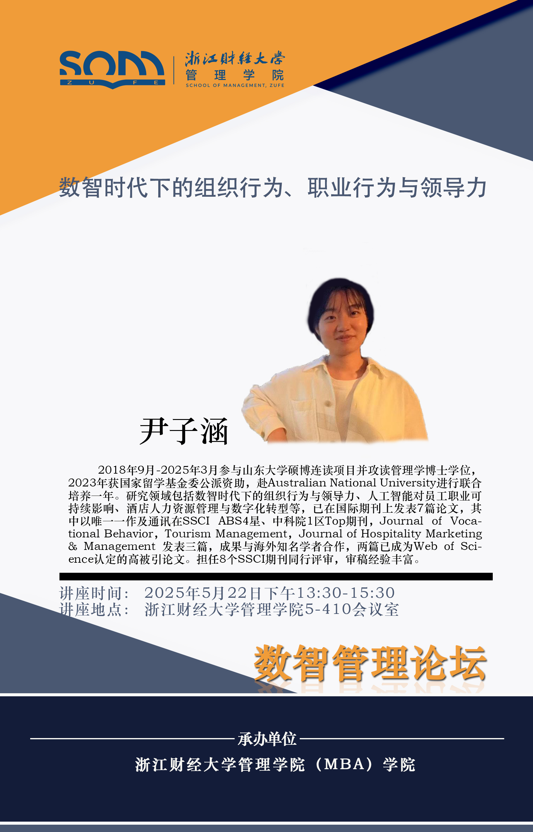 六合彩预测 新财经战略系列学术活动2025年第38期【学术报告】尹子涵:数智时代下的组织行为、职业行为与领导力