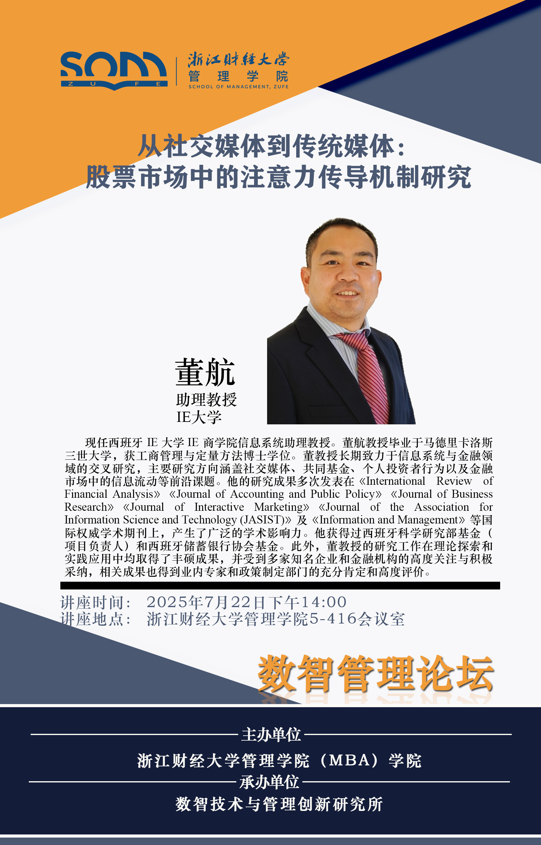 六合彩预测 新财经战略系列学术活动2025年第48期【学术报告】董航:从社交媒体到传统媒体:股票市场中的注意力传导机制研究
