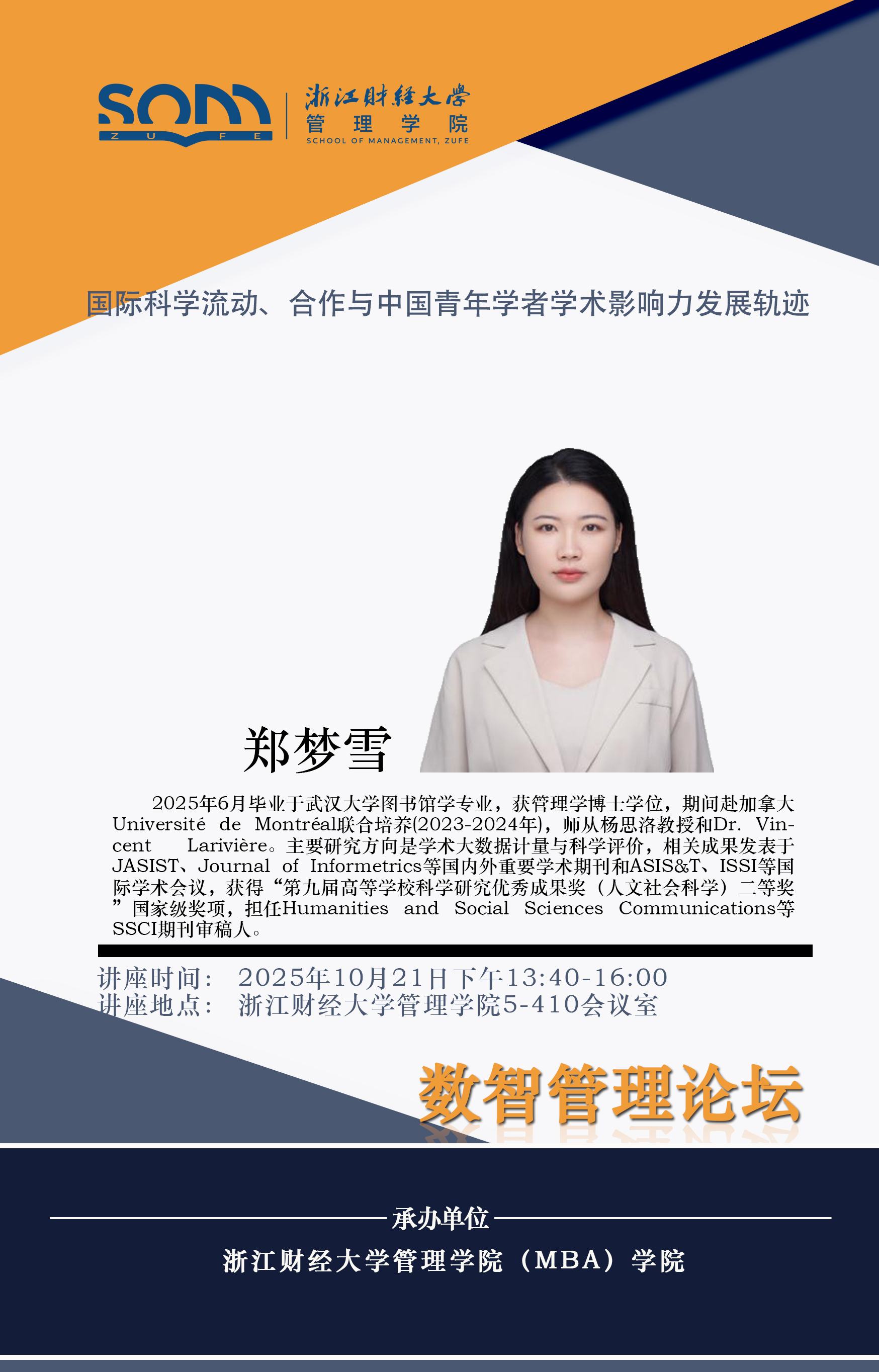 六合彩预测 新财经战略系列学术活动2025年第50期【学术报告】郑梦雪:国际科学流动、合作与中国青年学者学术影响力发展轨迹