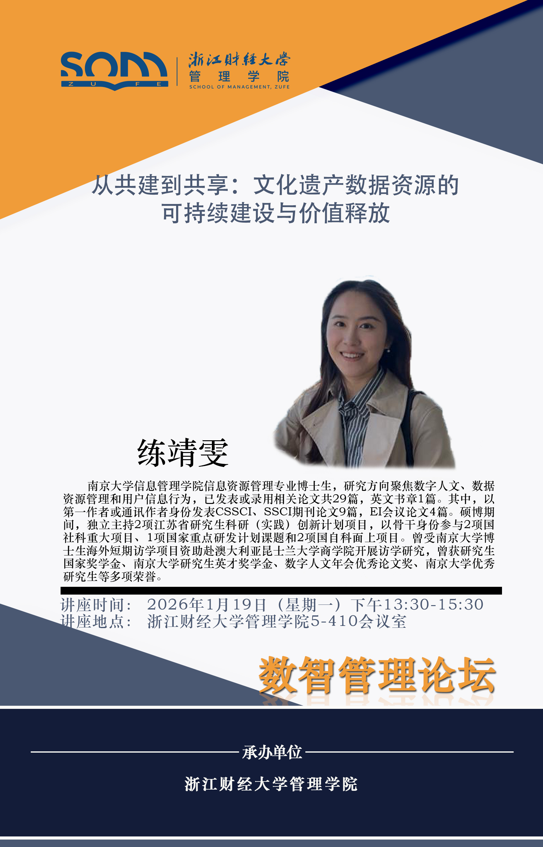 六合彩预测 新财经战略系列学术活动2026年第3期【学术报告】练靖雯:从共建到共享:文化遗产数据资源的可持续建设与价值释放