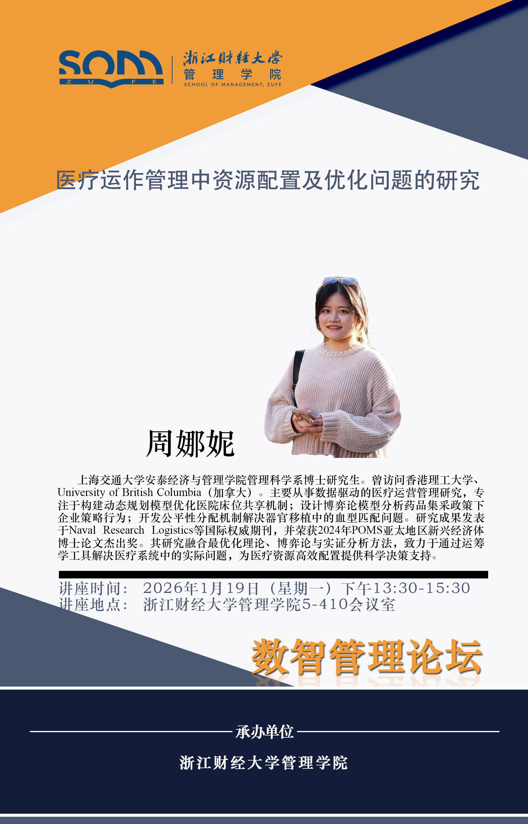 六合彩预测 新财经战略系列学术活动2026年第5期【学术报告】周娜妮:医疗运作管理中资源配置及优化问题的研究