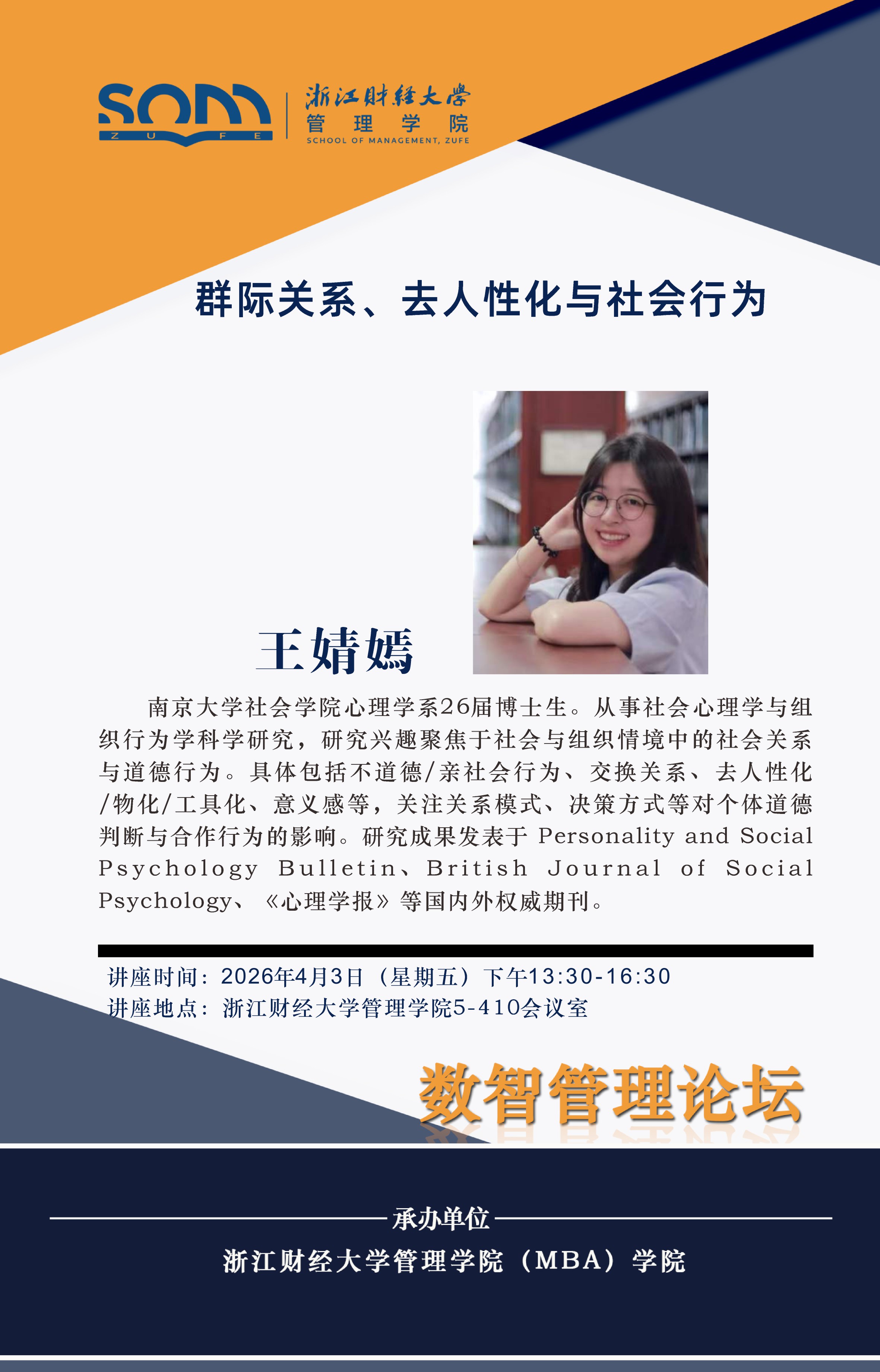 六合彩预测 新财经战略系列学术活动2026年第12期【学术报告】王婧嫣:群际关系、去人性化与社会行为