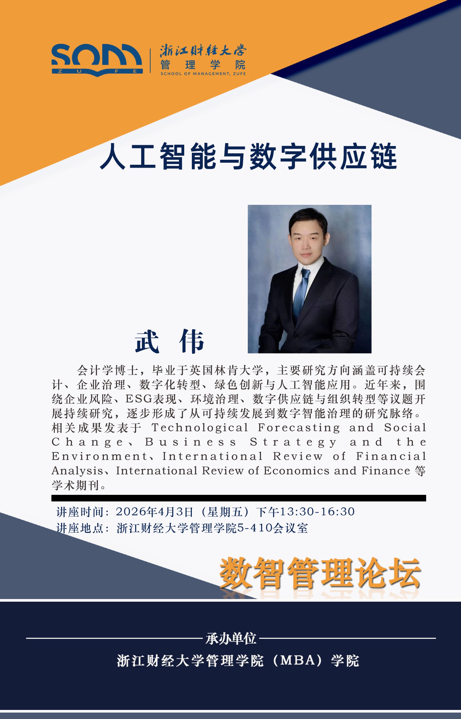 六合彩预测 新财经战略系列学术活动2026年第13期【学术报告】武伟:人工智能与数字供应链