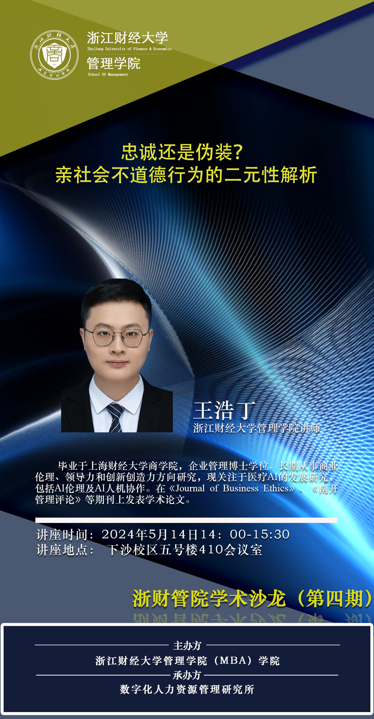 【六合彩预测 学术沙龙(第四期)预告】王浩丁:忠诚还是伪装?亲社会不道德行为的二元性解析
