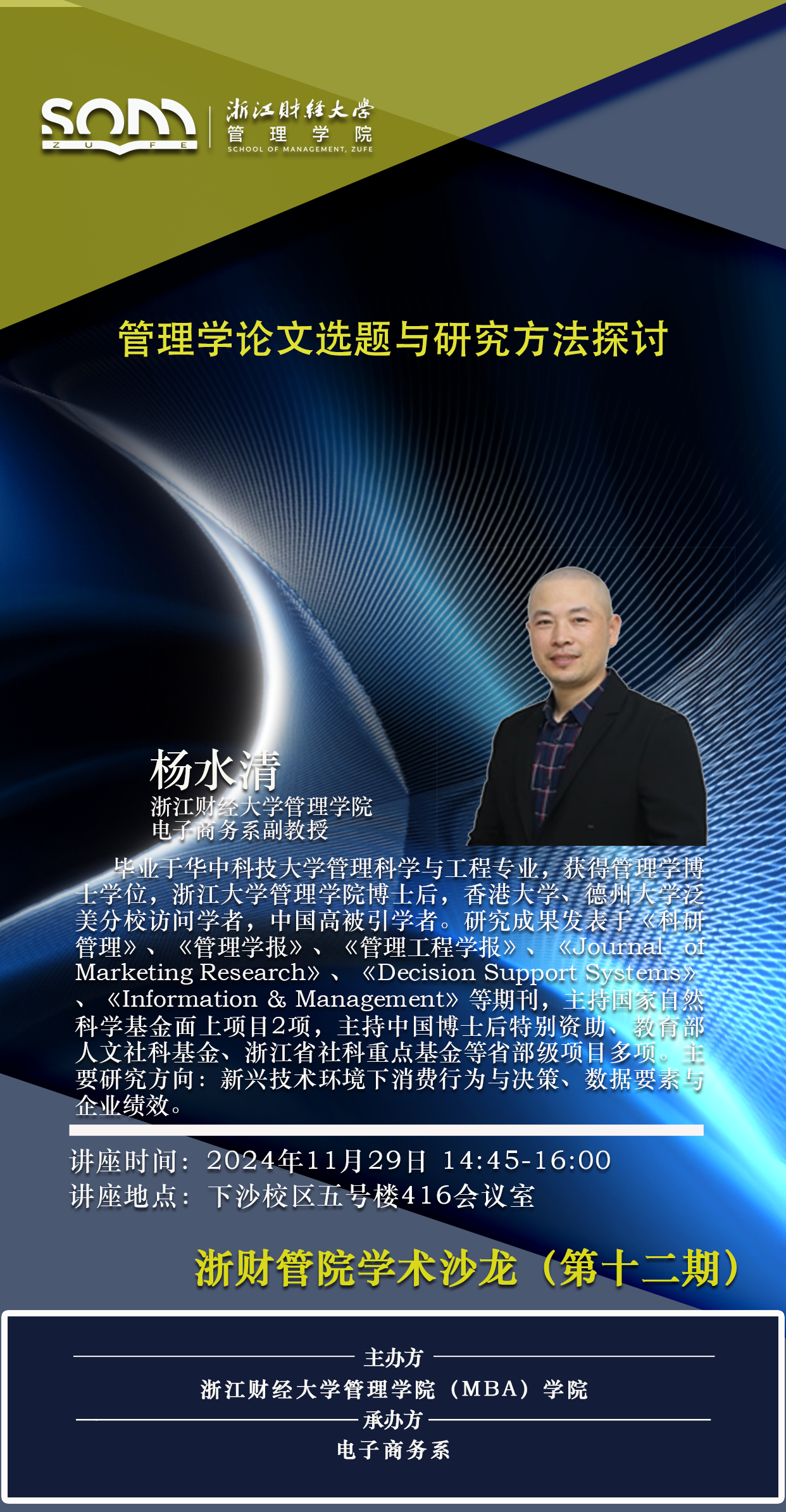 【六合彩预测 学术沙龙(第十二期)预告】杨水清:管理学论文选题与研究方法探讨