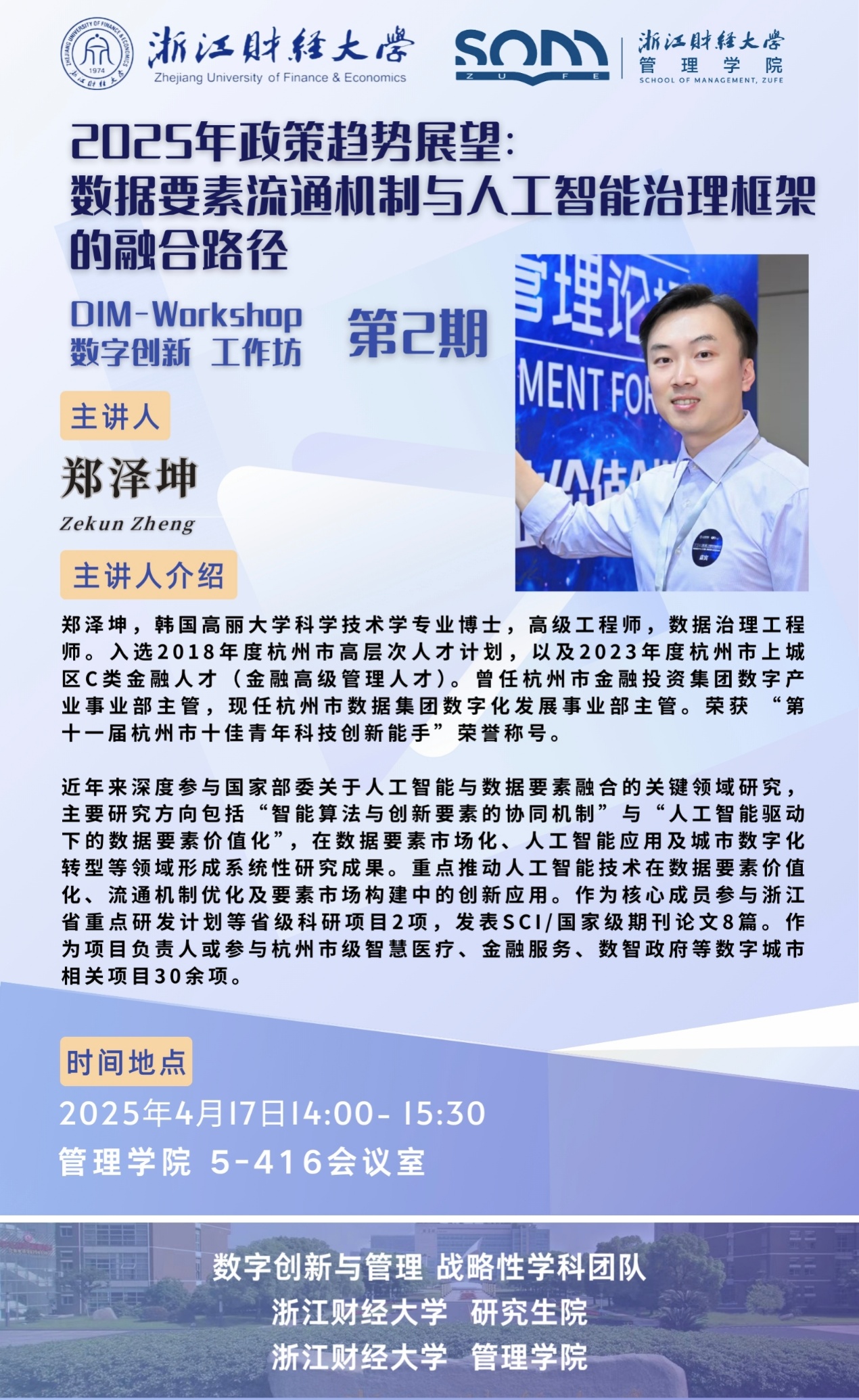 六合彩预测 新财经战略系列学术活动2025年第14期【数字创新工作坊】郑泽坤:2025年政策趋势展望:数据要素流通机制与人工智能治理框架的融合路径