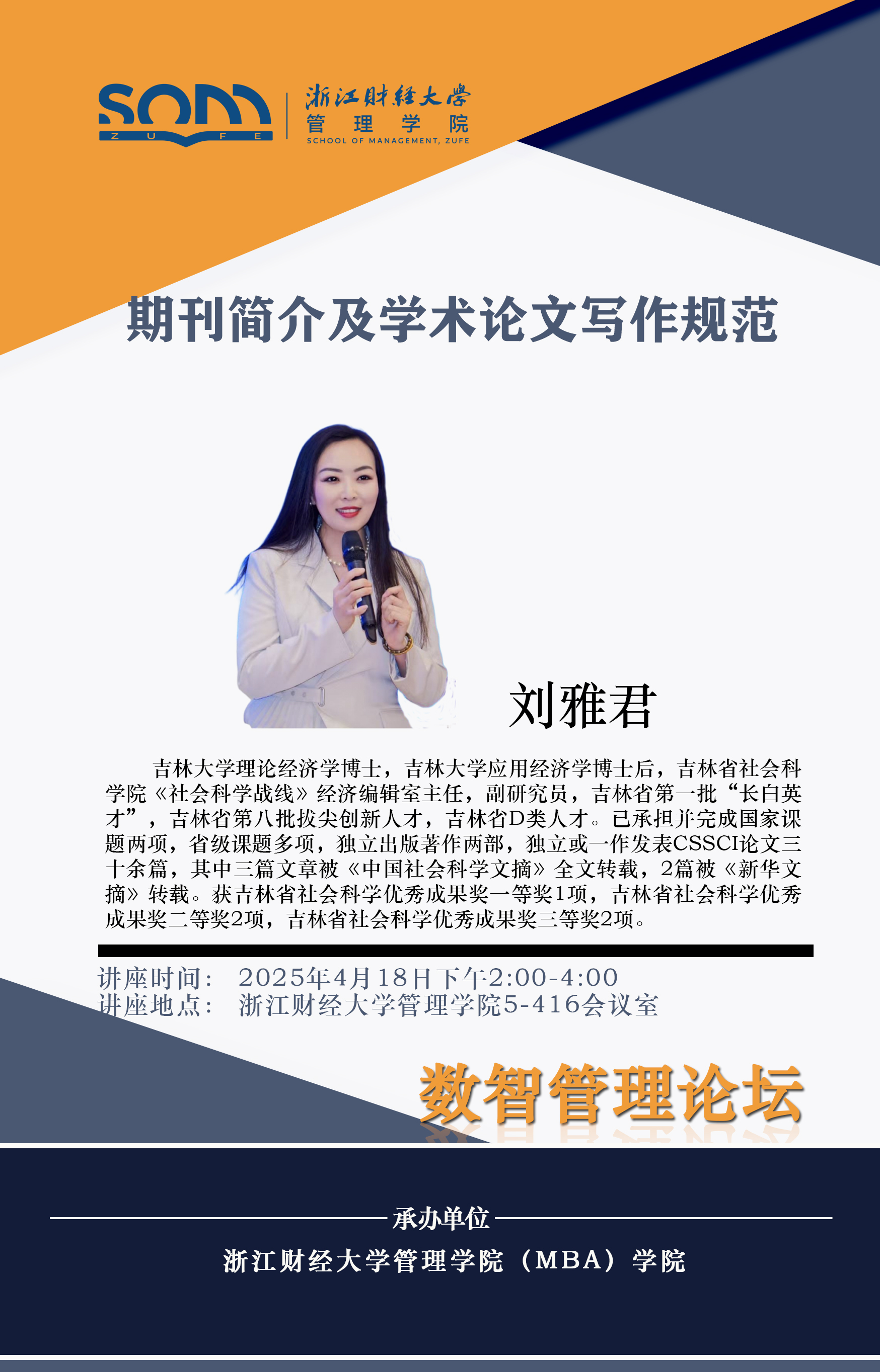 六合彩预测 新财经战略系列学术活动2025年第15期【学术报告】刘雅君:期刊简介及学术论文写作规范