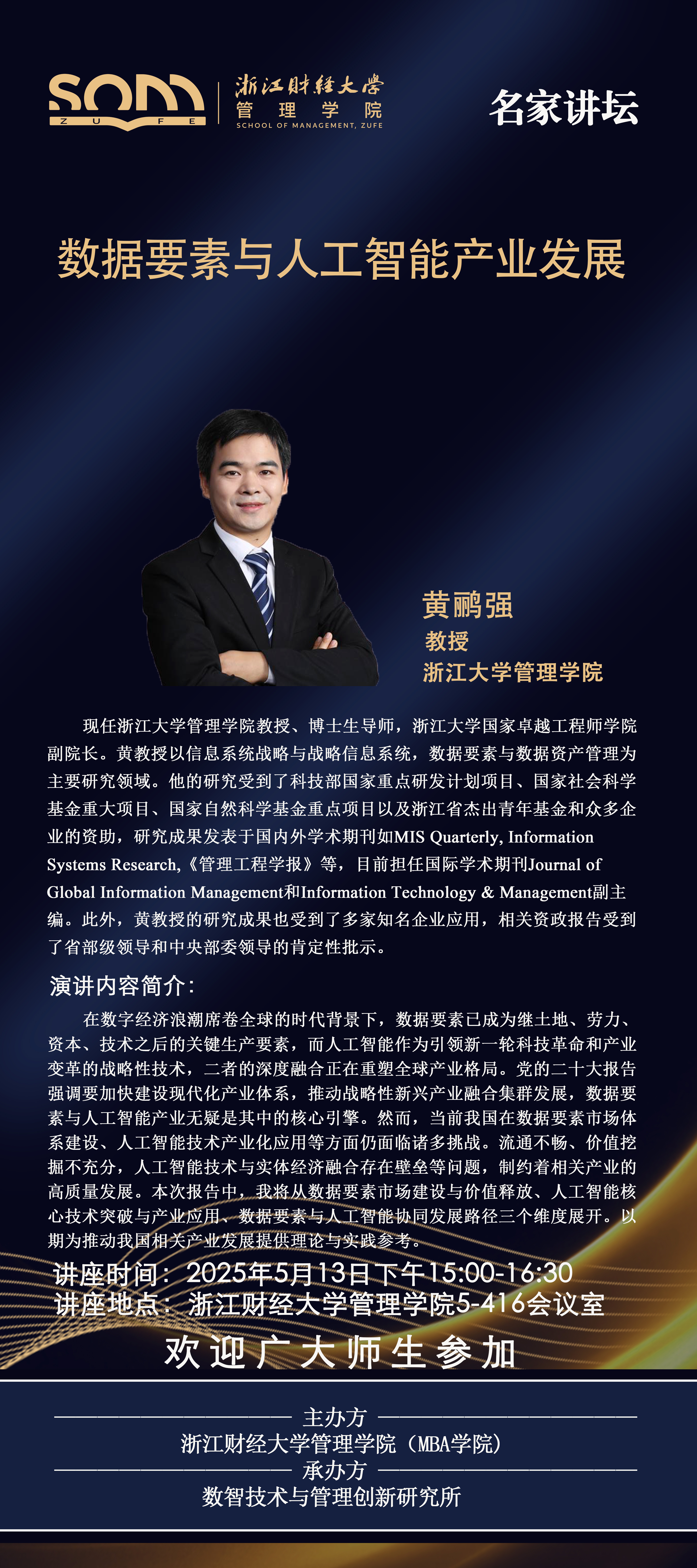 六合彩预测 新财经战略系列学术活动2025年第24期【名家讲坛】黄鹂强:数据要素与人工智能产业发展