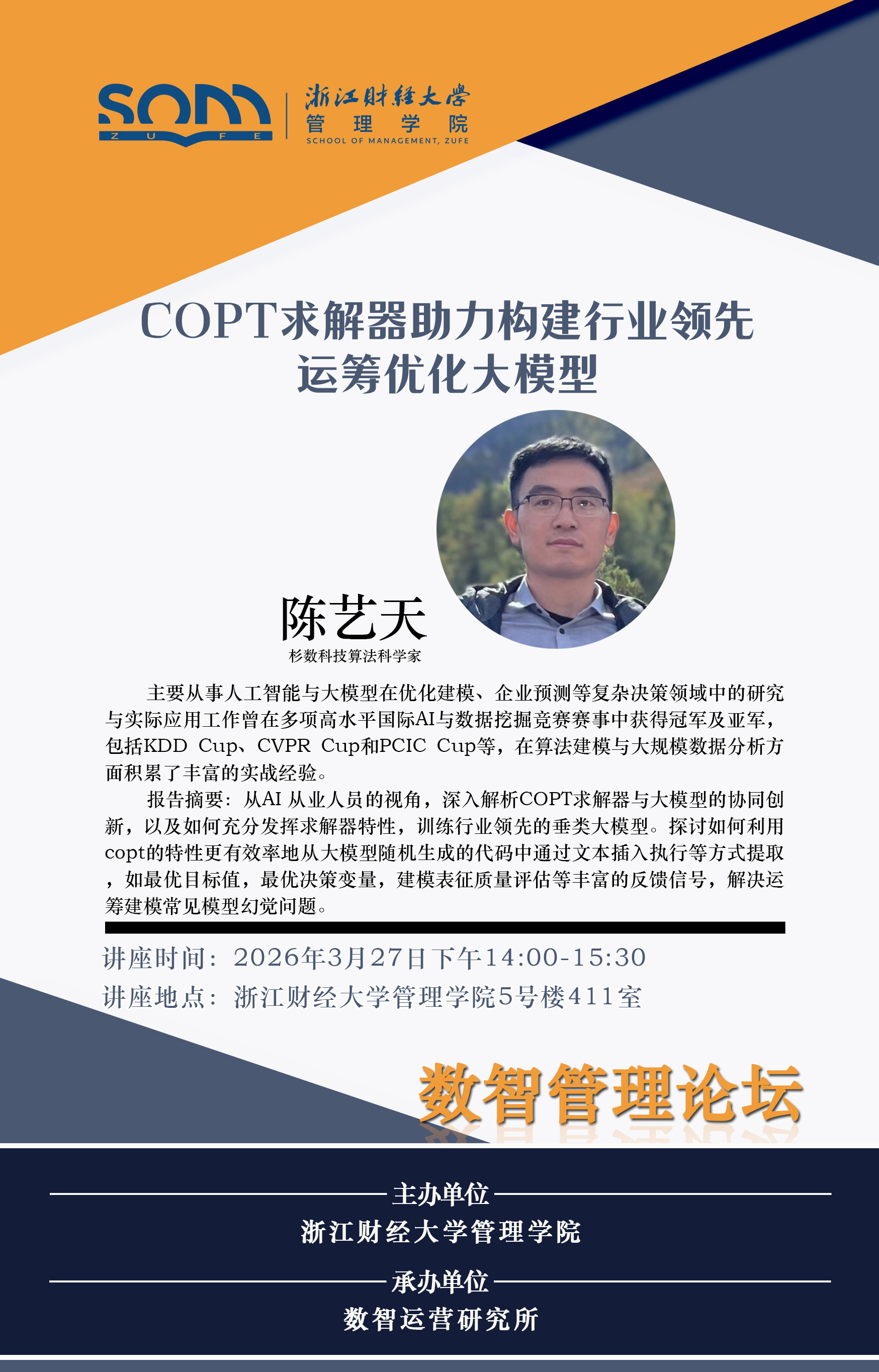 六合彩预测 新财经战略系列学术活动2026年第9期【学术讲座】陈艺天:COPT求解器助力构建行业领先运筹优化大模型