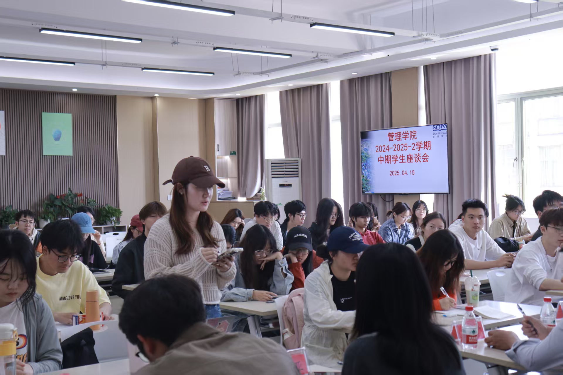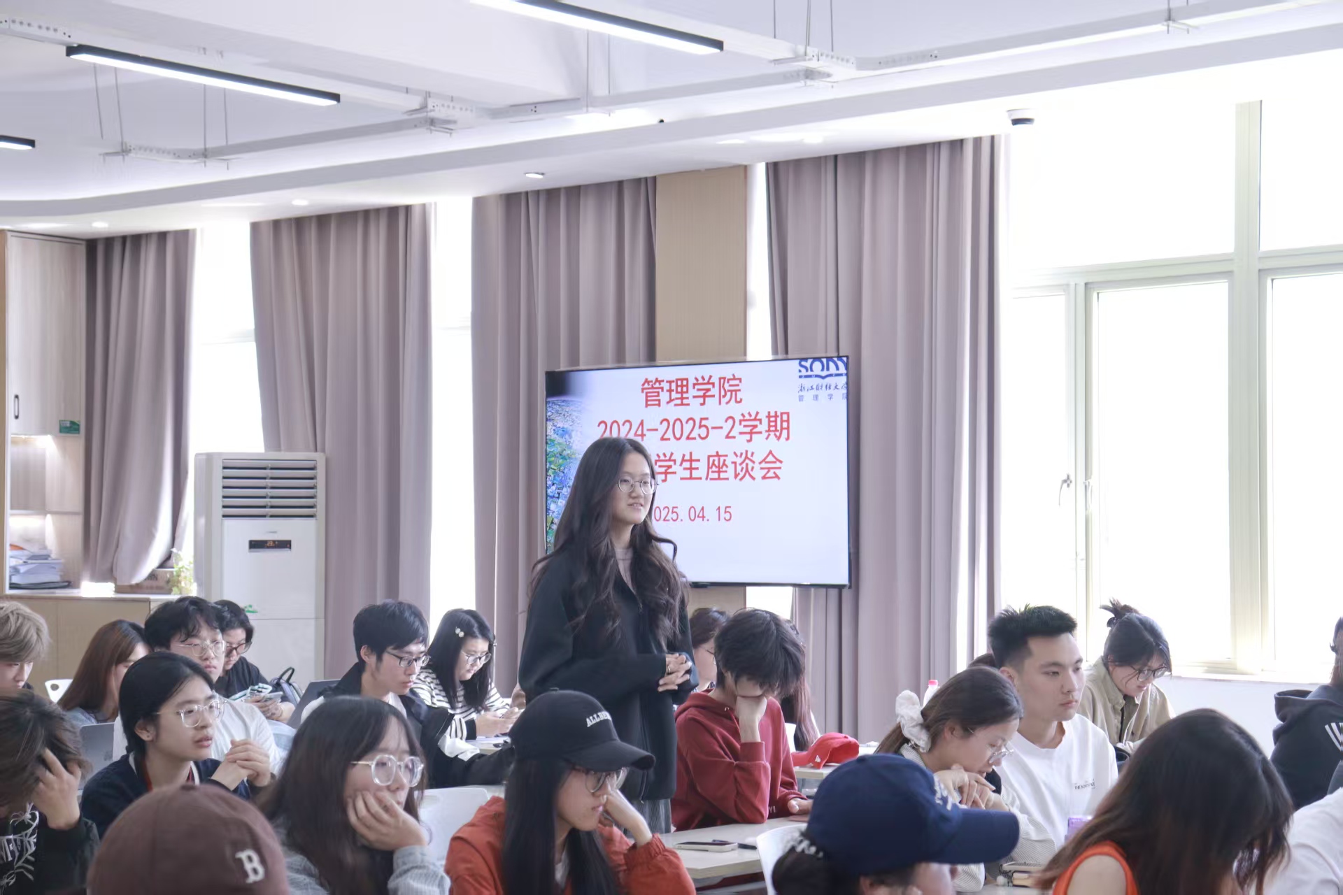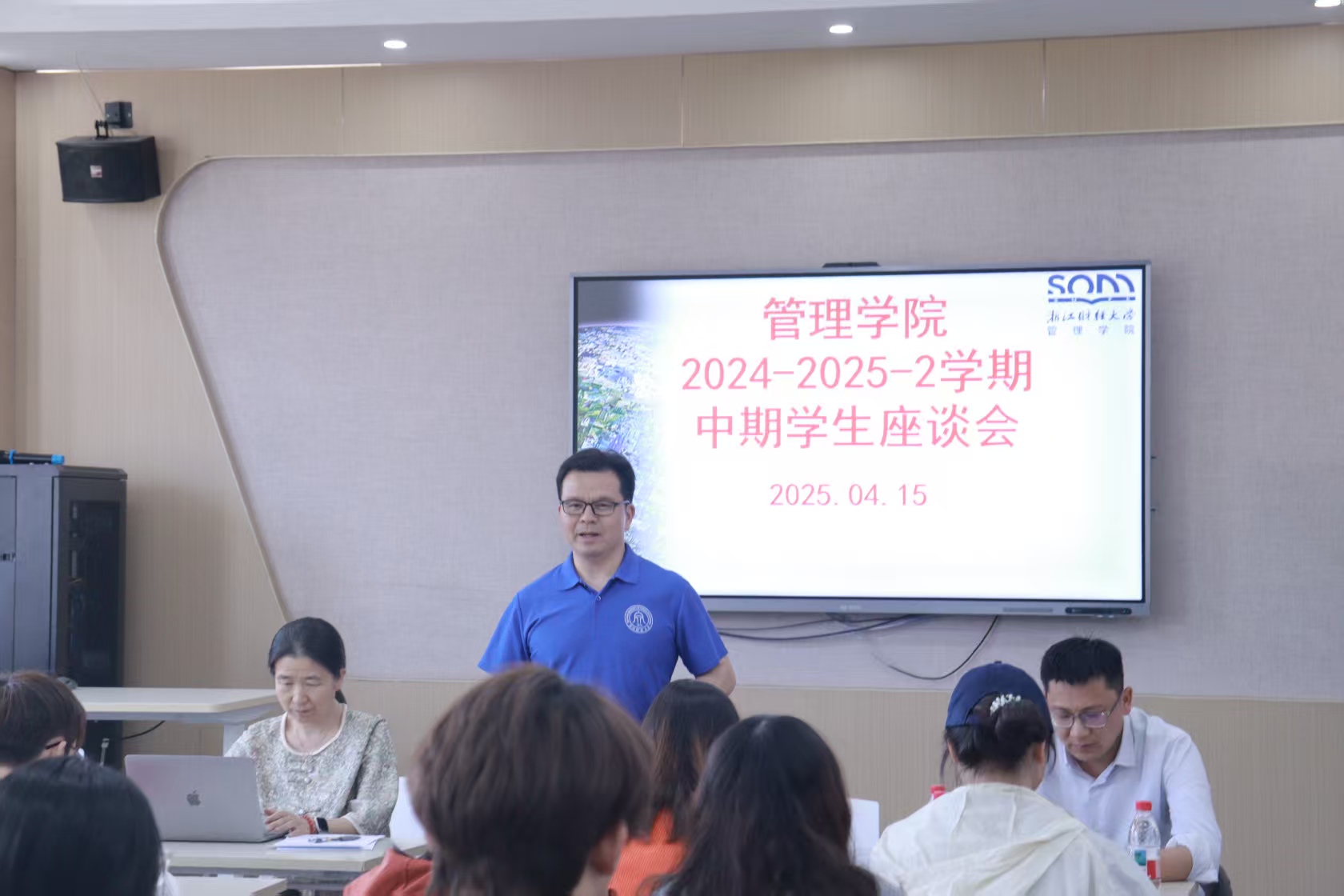 楼411顺利召开了2024-2025第二学期本科生中期座谈会。会议由本科生教学督导组组长郭军灵主持。吴丽民、汪志强、杨亚、周学广、李桢、陈蓓蓓、钱婕、周依凡等老师及22、23、24级各班级学生代表共50余人参加了本次座谈会。
