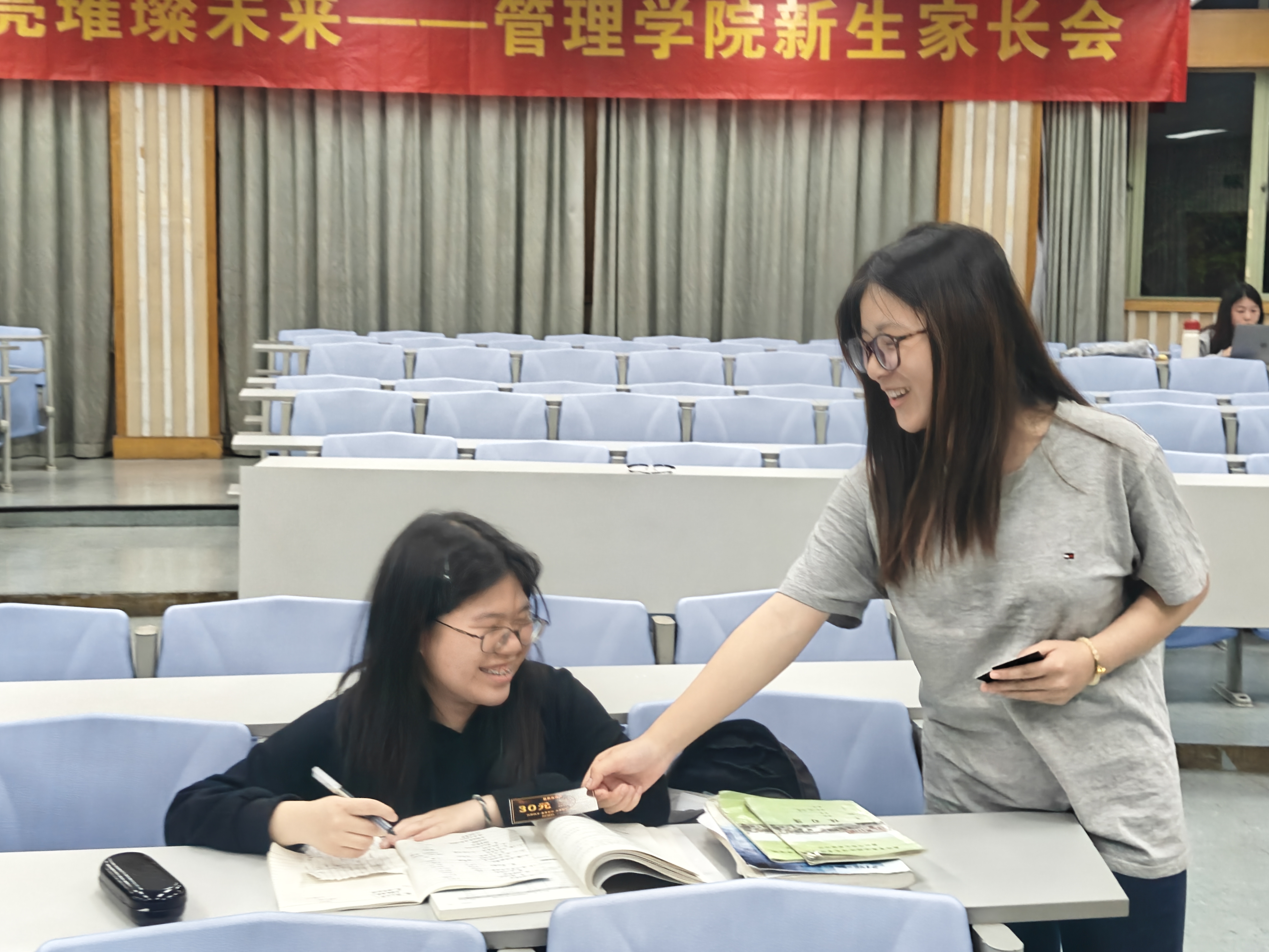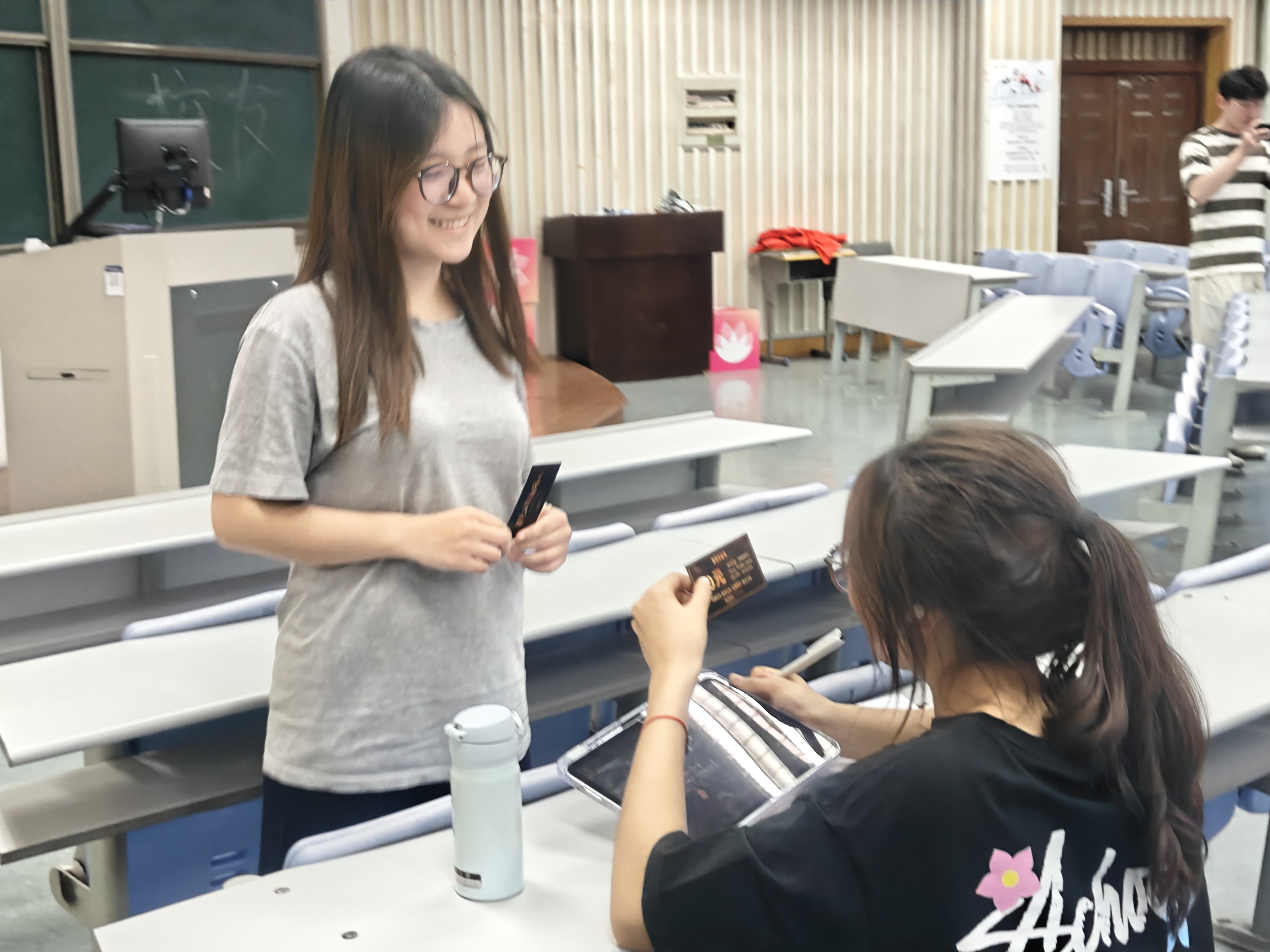 夜幕缓缓落下,管院楼内灯火辉煌,同学们正遨游在知识的海洋中。老师和学习部的成员们,脚步轻柔地走进一间间教室,开启了这一场温暖人心的相遇。每到一处,映入眼帘的都是同学们专注学习的模样,或是低头奋笔疾书,或是小声交流探讨。当我们说明此次来意,并递上夜宵券时,他们先是露出了惊讶的神情,转瞬之间,脸上便绽放出灿烂的笑容。有的同学兴奋地与身旁的伙伴分享这份意外之喜,有的同学则满含感激,连连道谢。