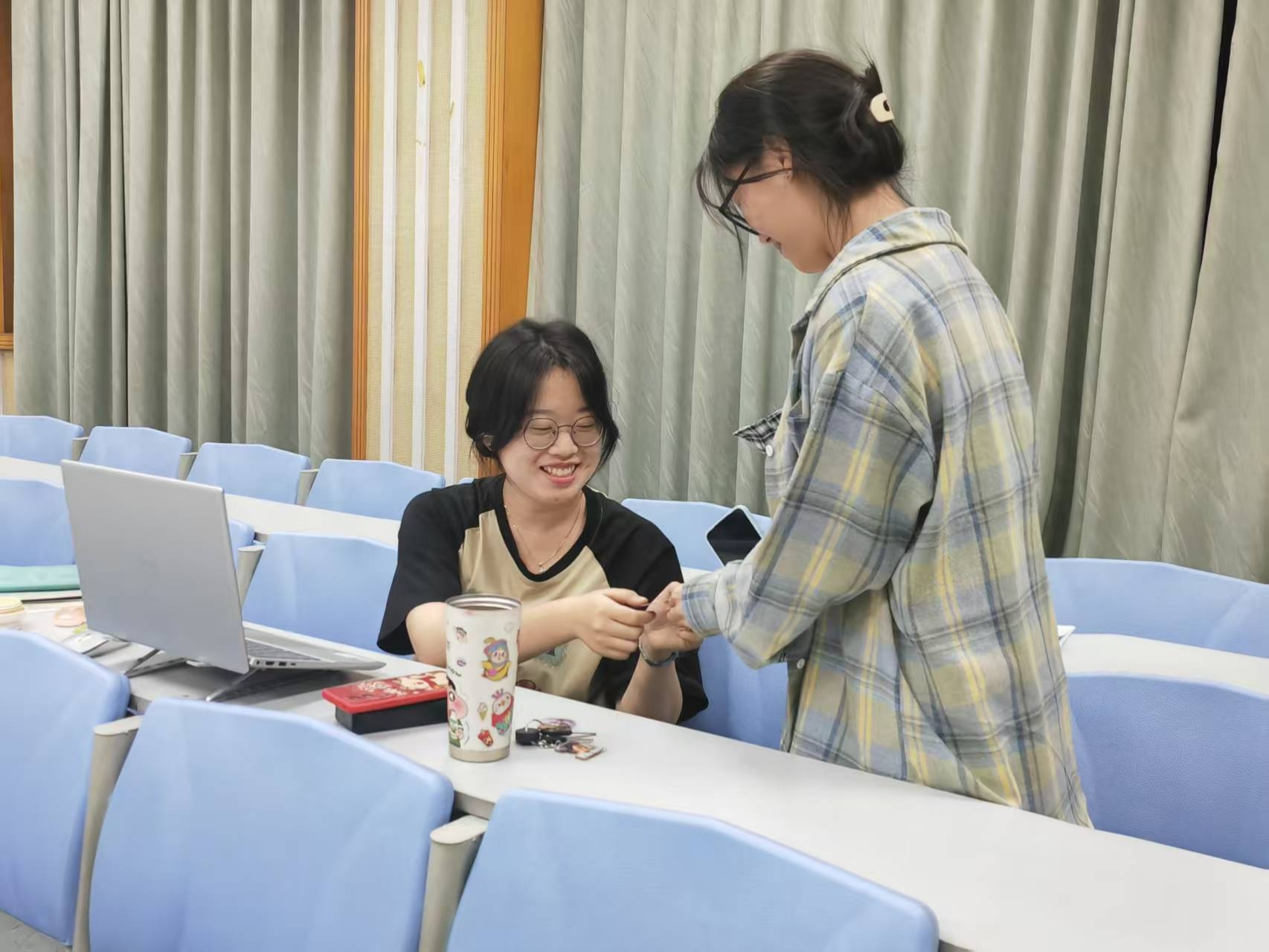 老师,带领学习部的成员们,共同进行了“星光不负赶路人——惊喜夜宵券”发放活动。