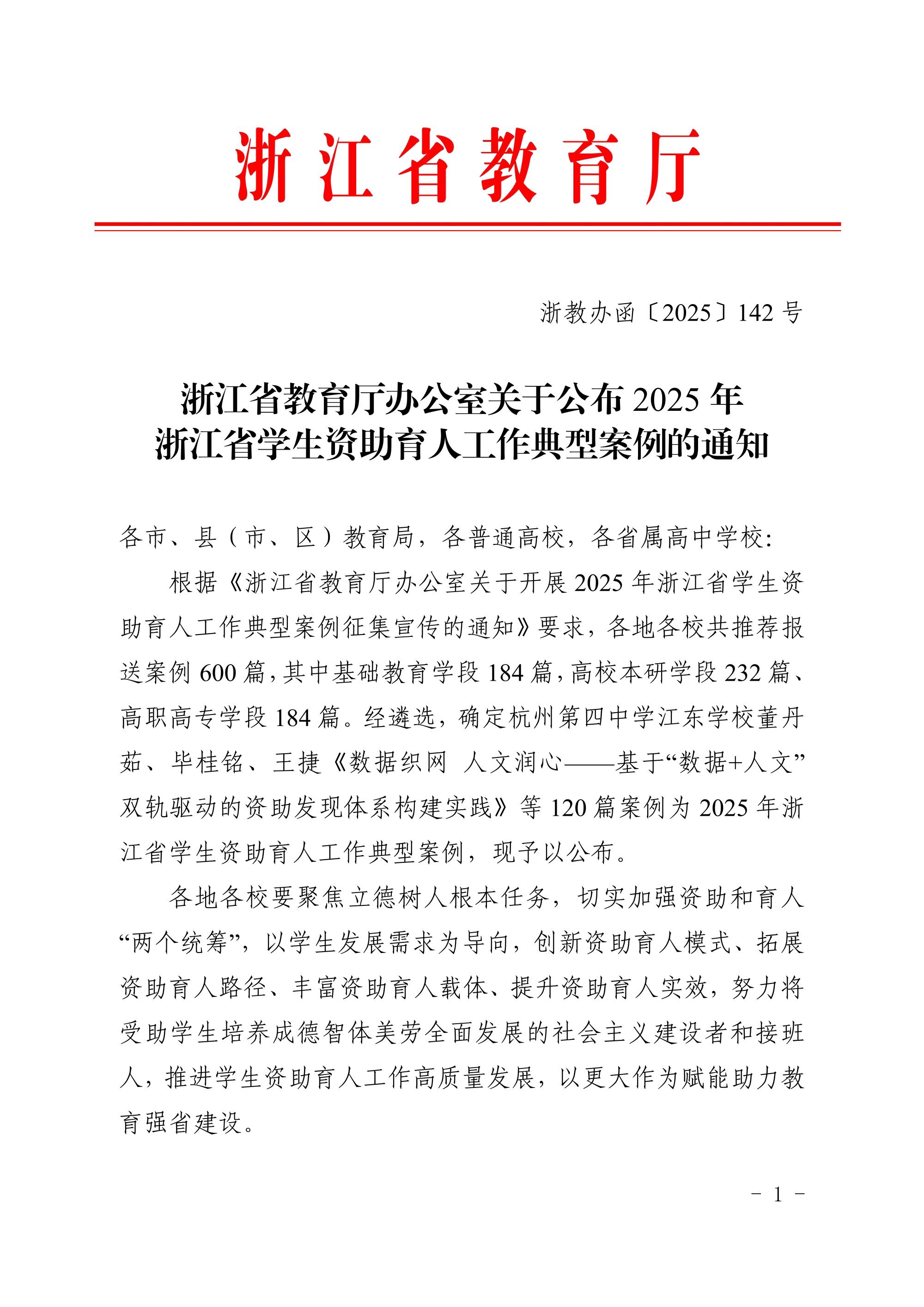 喜报丨六合彩预测 辅导员工作案例入选2025年浙江省学生资助育人工作典型案例