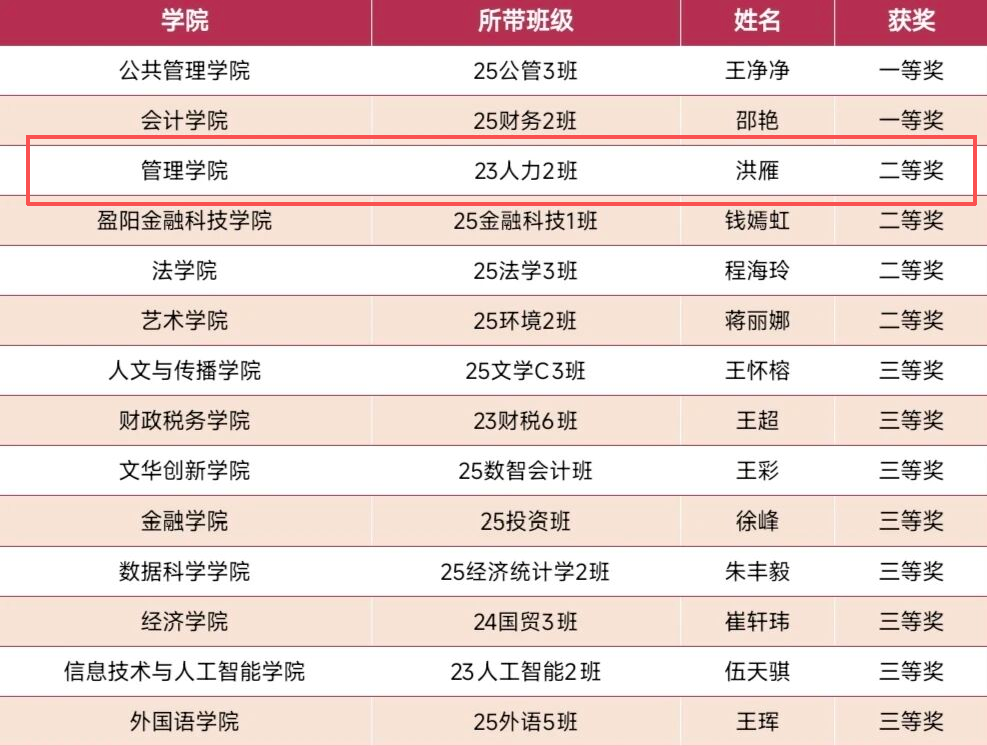 此次获奖,不仅是对洪雁老师教学能力的肯定,也是六合彩预测 持续推进“三全育人”、重视班主任队伍专业化建设的成果体现。未来,六合彩预测 将继续强化班主任队伍建设,推动本科生班主任工作守正创新、提质增效,着力培养具有前沿系统知识,品德高尚、能力卓越、素质优良的“K+MAQ”型中流砥柱型人才。
